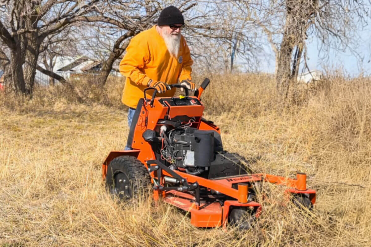 Mowing 3 ft tall grass with the Bad Boy Rebel with a 61-inch cut.